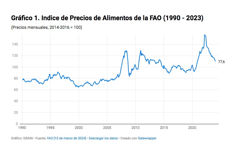 La FAO y las corporaciones han atribuido los recientes aumentos de los precios de los alimentos a alteraciones en las cadenas de suministro del petróleo, el gas, los fertilizantes y los productos básicos. Pero esta es una verdad a medias y por tanto engañosa, ya que no mencionan cómo la actual estructura del sistema alimentario fomenta y amplifica estas alteraciones.