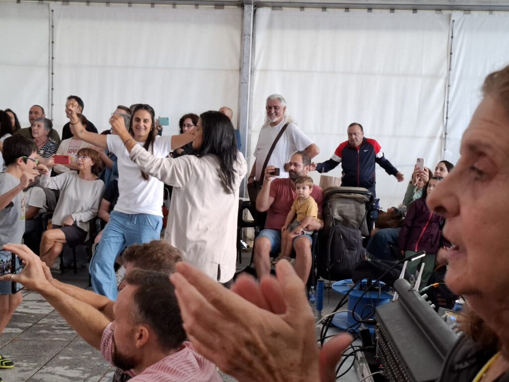 A continuación, interpretan la canción de Panaderas ‘Diciendo tu madre’ a capella, a dos voces, tan solo con la percusión de sus manos y su voz.