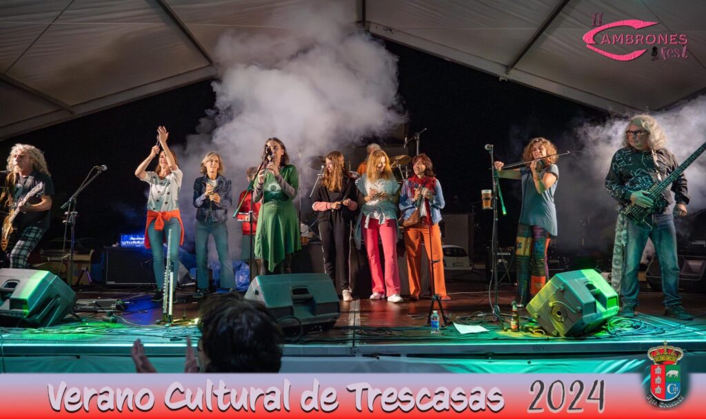 El pasado sábado, en su actuación en el marco del II Cambrones Fest, las integrantes de Masamadre, ataviadas con falda larga de labor, blusa, mandil y significativo pañuelo a la cabeza, hicieron vibrar a un pueblo que atesora una rica historia y que cada vez es más consciente de su raíz. Bailaron la jota niña/os y mayores y, entre el público, se pudo ver a miembros de grupos folk con tanta solera como El Nuevo Mester de Juglaría o A Traque Barraque, vecina/os también de Trescasas. Al finalizar la jornada, algunas de las intérpretes de las Panaderas participaron en el concierto del grupo de folk irlandés The Green Tones.